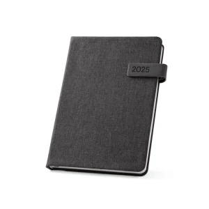 Agenda Personalizada A5 em PET (100% rPET). Agenda com fecho magnético em PU, marcador em fita e suporte para esferográfica (não inclusa). Está organizada num plano diário. Fornecida com bolsa de non-woven. 148 x 210 mm | Bolsa: 205 x 250 mm